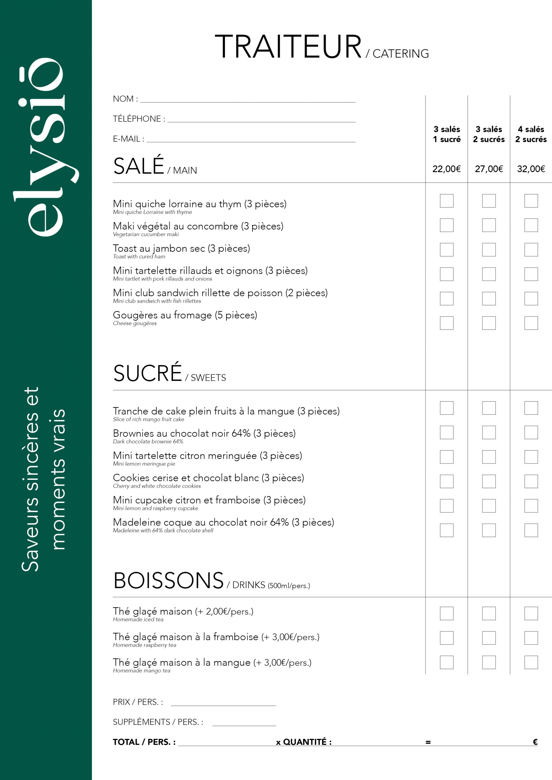 Elysio c’est une offre traiteur sur-mesure pour les entreprises. Cocktails événementiel, buffet d’entreprise, brunch ou petits-déjeuners gourmands… Tout est fait maison, avec des produits de qualité, et pensé pour répondre aux besoins des entreprises souhaitant offrir à leurs collaborateurs ou invités une expérience culinaire authentique, tout en respectant un budget accessible.